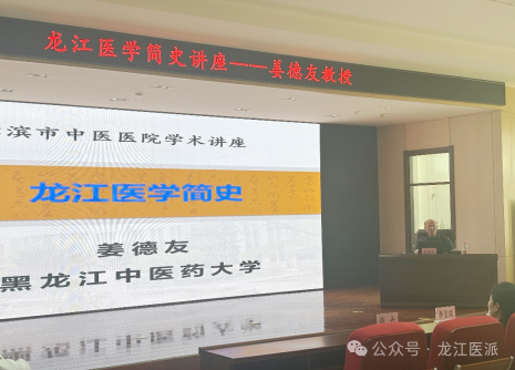 仪式结束后,姜德友教授为哈尔滨市中医医院全体医师作《龙江医学简史》讲座。