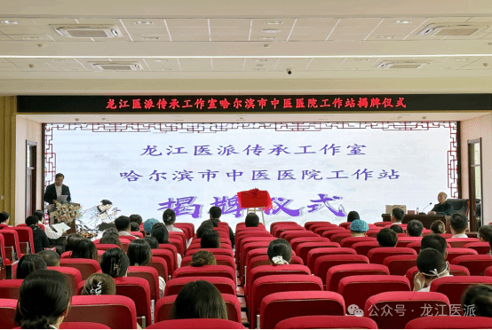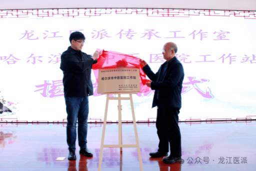仪式上,黑龙江中医药大学中临床基础学科带头人、国家中医药管理局龙江医派传承工作室负责人、黑龙江省龙江医派研究会会长姜德友教授与哈尔滨市中医医院党委副书记、院长李玺琨共同为工作站揭牌。